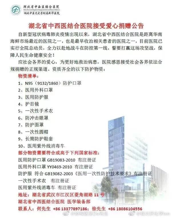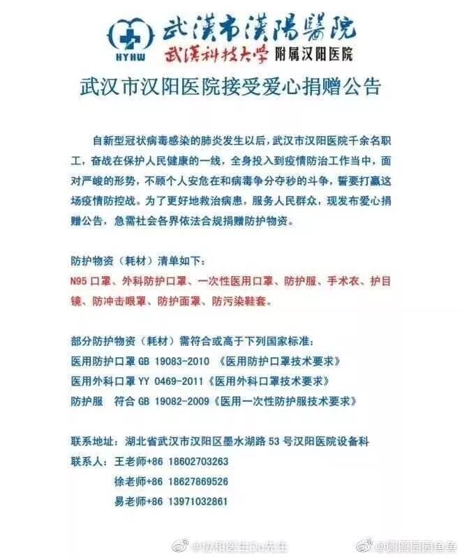 据楚天都市报、湖北之声等消息武汉多家医院物资紧张目前医院请求紧急支援